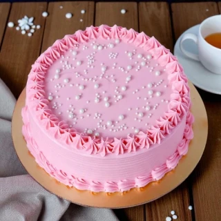 Pink Cream Cake – Elegant Birthday Cake with Edible Pearls