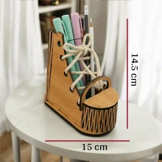 Handcrafted Shoe Pen Stand – MDF Wooden Desk Organizer for Pens, Pencils & Stationery