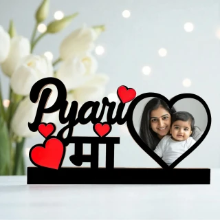 Personalized Pyari Maa Wooden Photo Frame | Custom Mother’s Day Gift India | MDF Table Top Photo Frame with Name & Photo | Unique Gift for Mom | Home Decor | DVMART®
