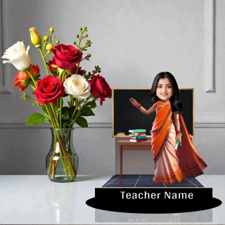 Personalized Teacher Caricature MDF Wooden Standee | Custom Name Teacher Figurine Desk Decor | Unique Teachers Day Gift, Farewell & Appreciation Gift | DVMART®