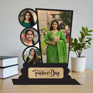 Personalized Teacher’s Day Wooden Photo Frame (4 Photo Collage) | Custom MDF Multi Photo Frame Gift for Teachers | Happy Teacher’s Day Desk Decor | Unique Teacher Appreciation Gift India | DVMART®