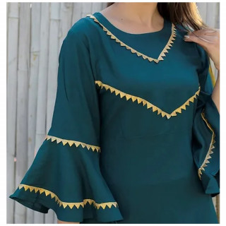 Women's Rayon Teal Green Kurti Ethnic Long Western Dress with Round Neck and Full Stitched
